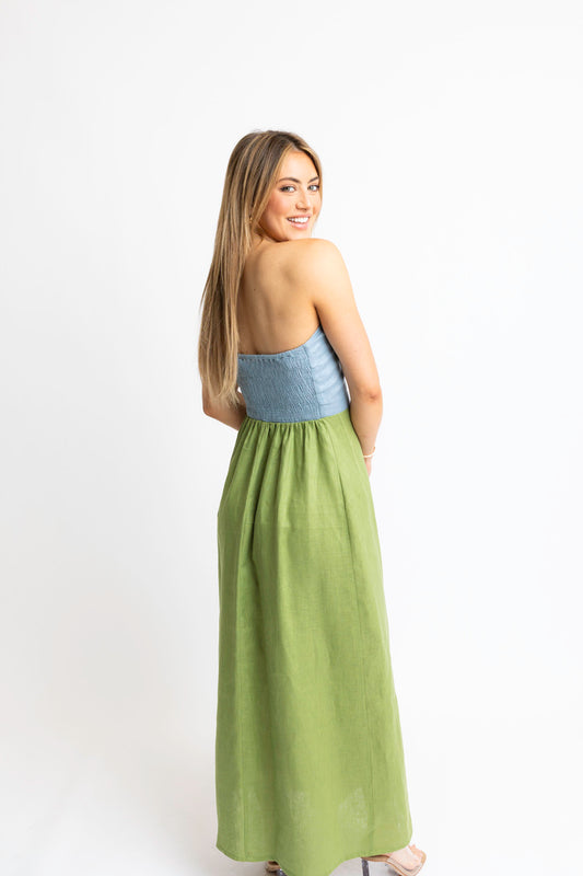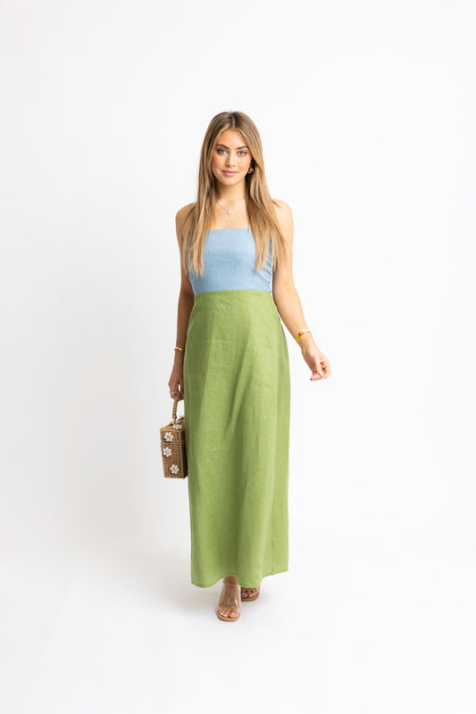Colorblock Linen Bustier Maxi Dress