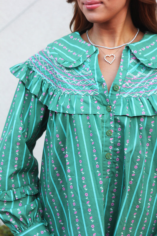 Floral Stripe Peter Pan Dress