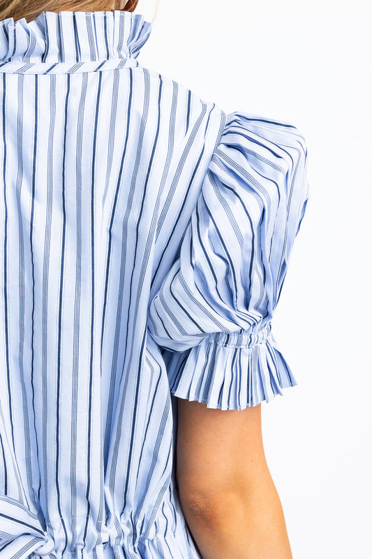 Stripe Poplin Pleat Sleeve Shirt Dress