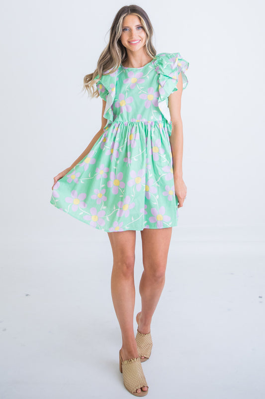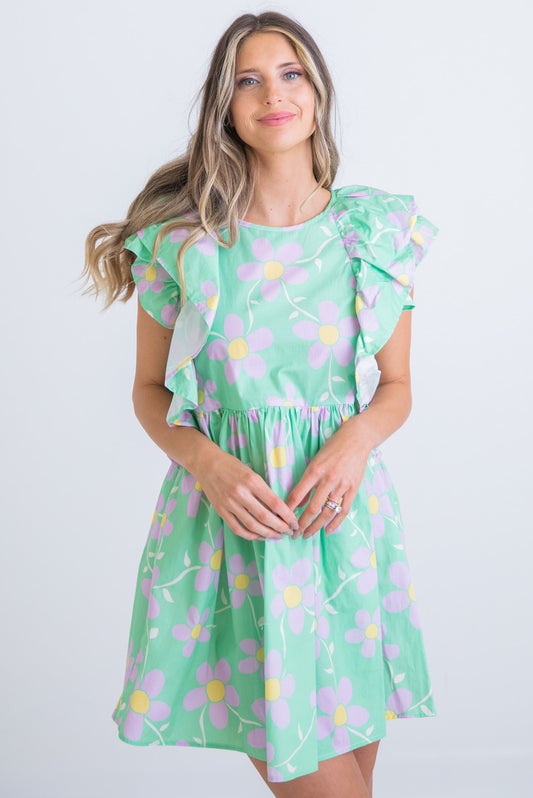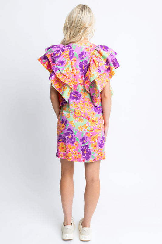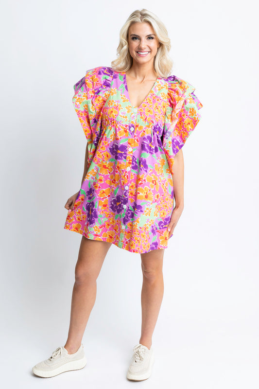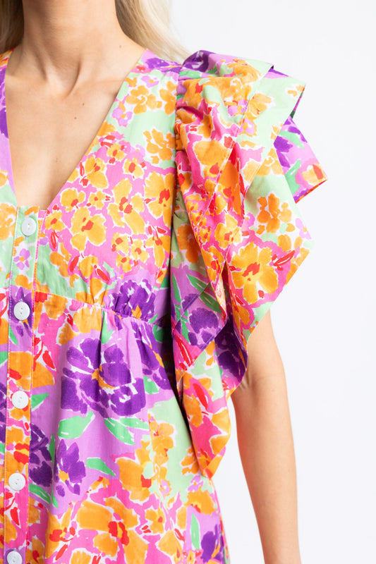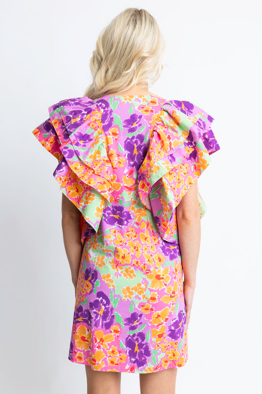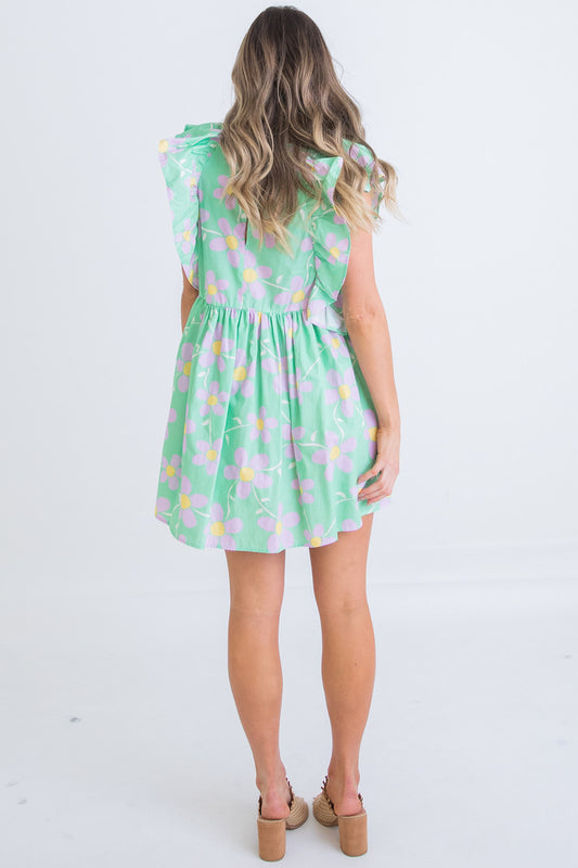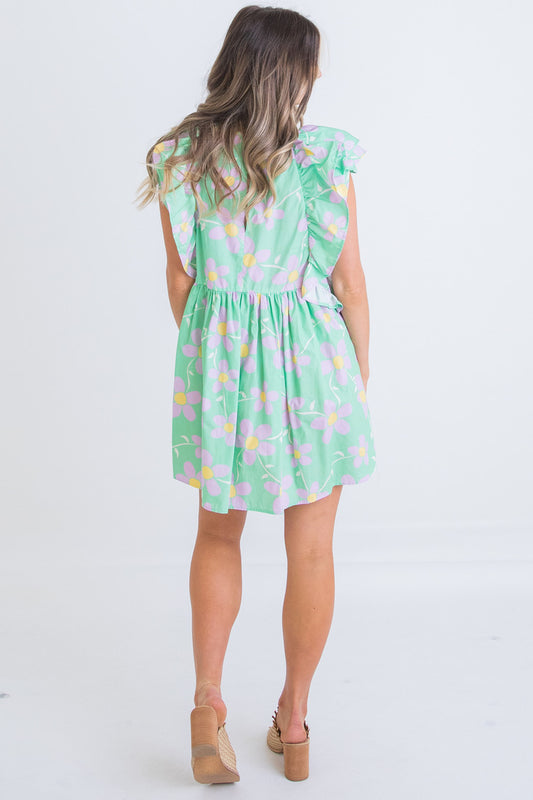 Floral Garden Vneck Ruffle Dress
