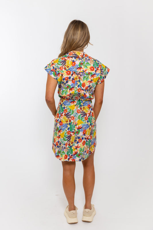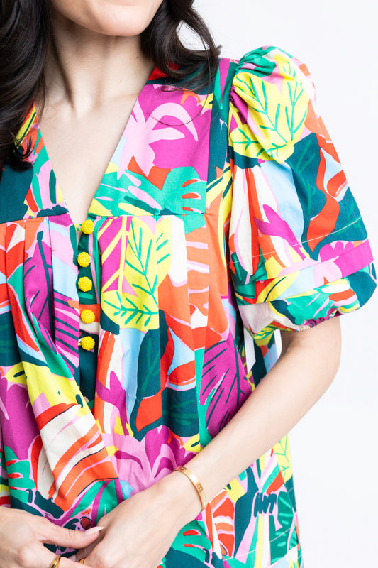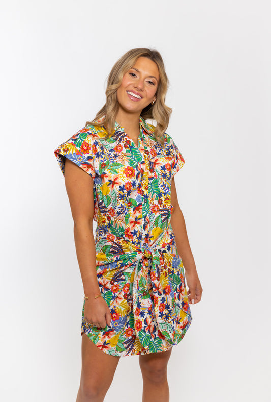 Bright Palm Wrap Shirt Dress