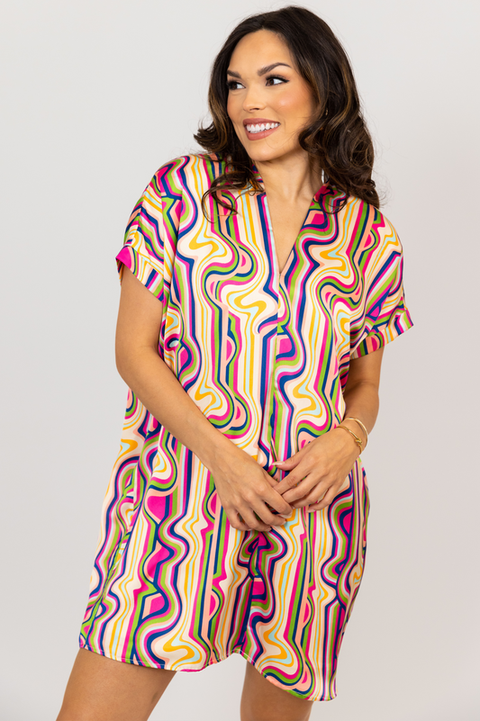 Abstract Satin Signature Vneck Dress